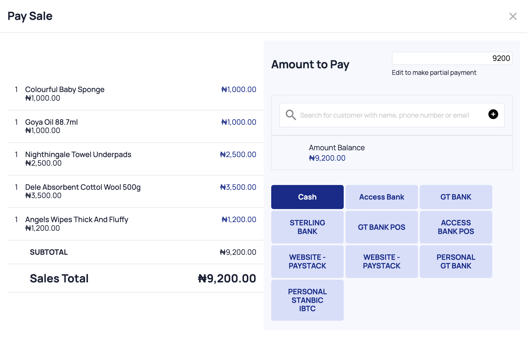 - Split payments (cash, transfer, POS, etc.)